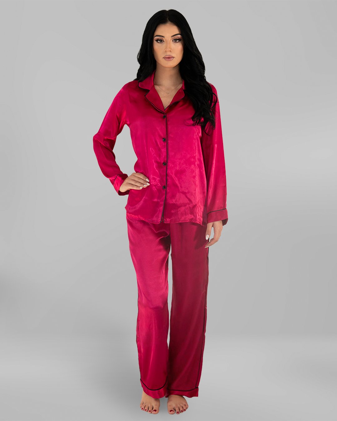Комплект Дълга Сатенена Пижама – Пепел от Рози Тъмна – „Velvet“
