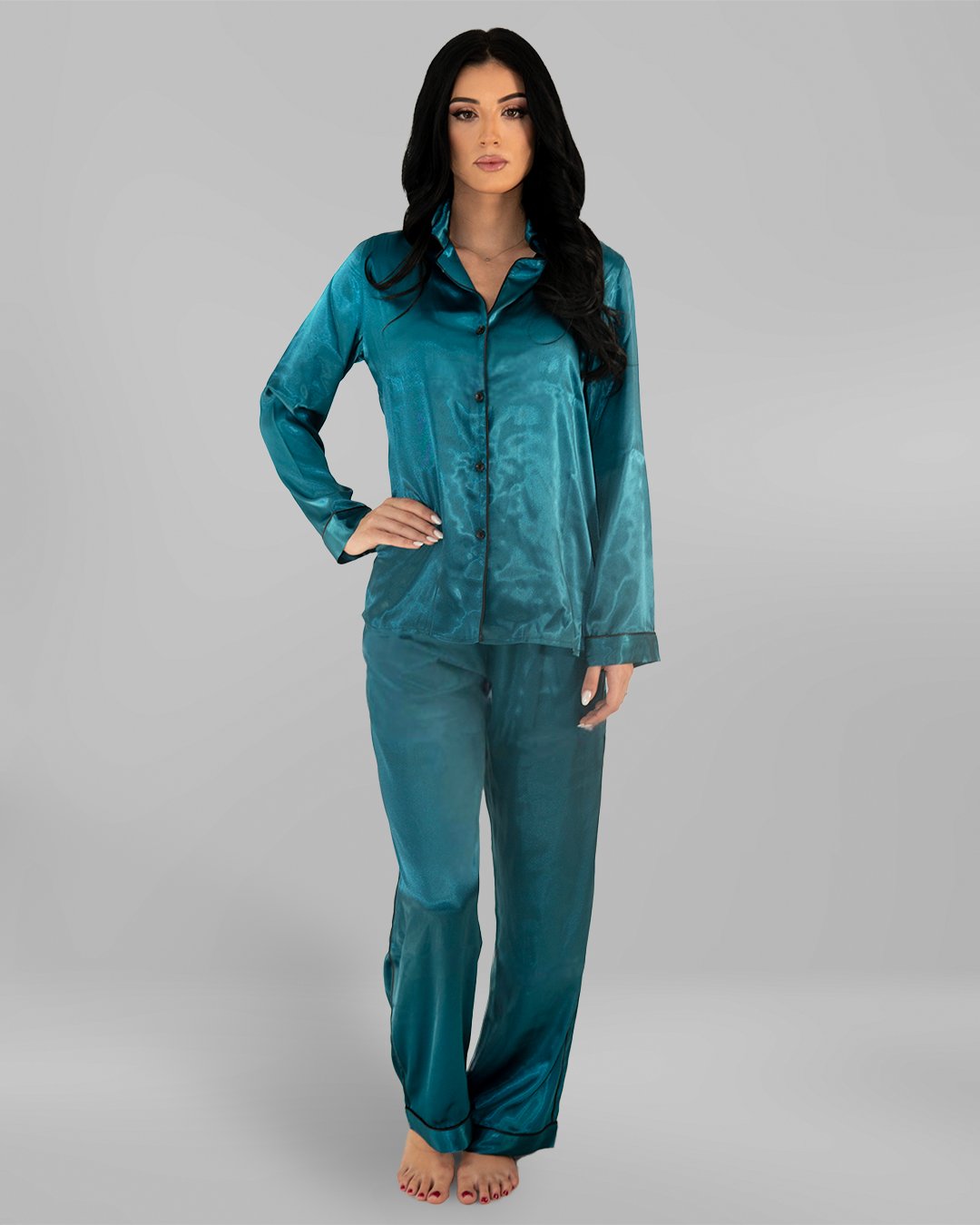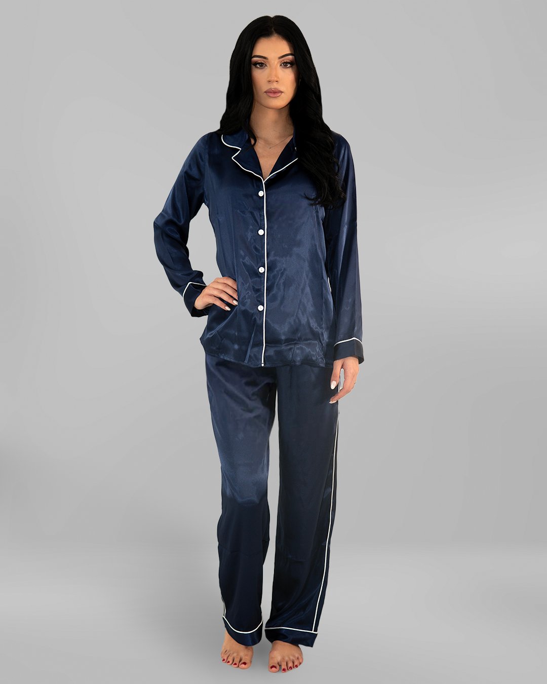 Комплект Дълга Сатенена Пижама – Тъмносиньо – „Midnight“